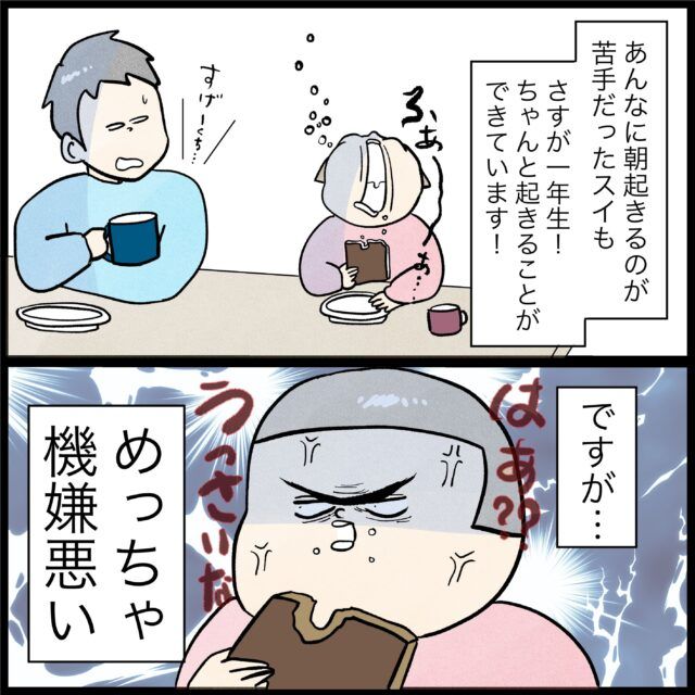 もうそれだけで母は十分なのですが・・・代わりに朝の機嫌が悪いのなんのって・・・。