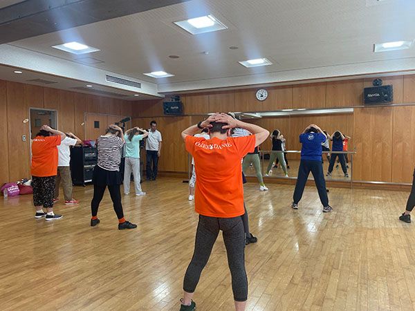 これが今回の振り付け??だそうです。 なんだかふにゃふにゃしていてぎこちない、可動域も狭くテンポ遅れてる自分の動きに愕然とするも、「楽しく踊ればいいのよ〜」と励まされ、体を動かしているうちに自然と笑顔になってくる。