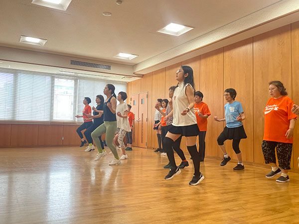 インストラクターの森佐知子先生。先生曰く、「頑張らないで、とにかく楽しむ」ことがモットー。キャサリン・ラビットの練習は月2回、1回90分で、運動の強度は“ストレッチ以上、エアロビクス未満”。1つのダンスを繰り返し練習するので、途中参加でも心配は要らなさそう。イベントや大会への出演もあり、ダンスにも目標と期限を持って取り組めます。