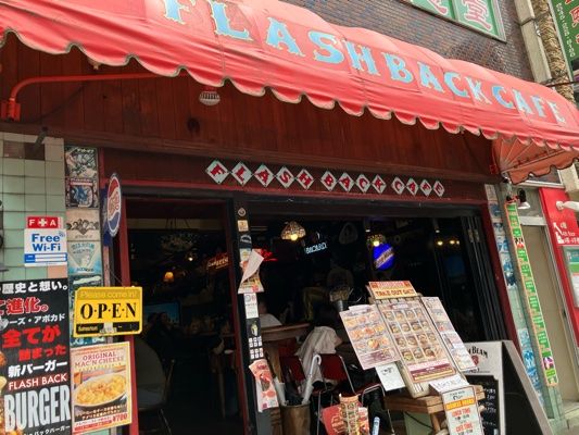 店内に入ると外国人が沢山いて、内装もこれぞ、アメリカ!!って感じのハンバーガーショップ「フラッシュバック・カフェ」。ハンバーガー好きな私は前から行ってみたくて、やっと叶いました!