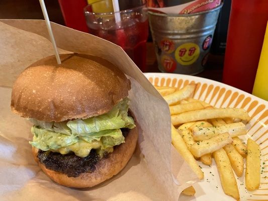 (パテ×2、アボカド、チーズ、ソテーオニオン、トマト、レタス、ピクルス)ポテト&ドリンク付き1,550円(バーガー単品-300円、バーガー&ポテト-150円、バーガー&ドリンク-150円)と、色々なチョイスがあります。
