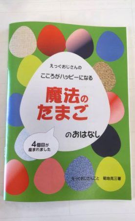 こちらが第4弾の著書。先生に写真を送っていただきました。『えっぐおじさんのこころがハッピーになる 魔法のたまご のおはなし』えっぐおじさん 菊地克三 著