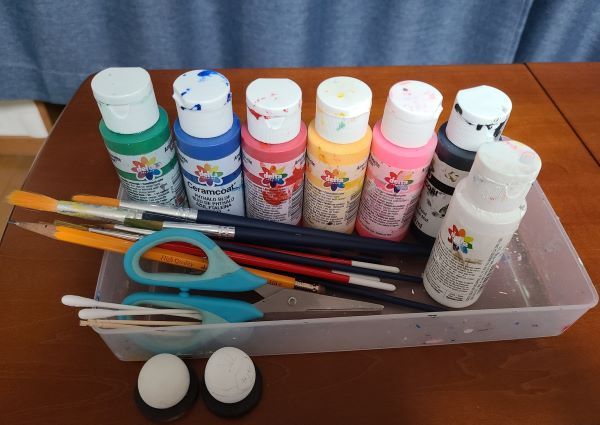 絵の具の種類も豊富でラメ入りもありました。筆だけでなく、爪楊枝や綿棒も使えるので、細かい作業も楽々です。