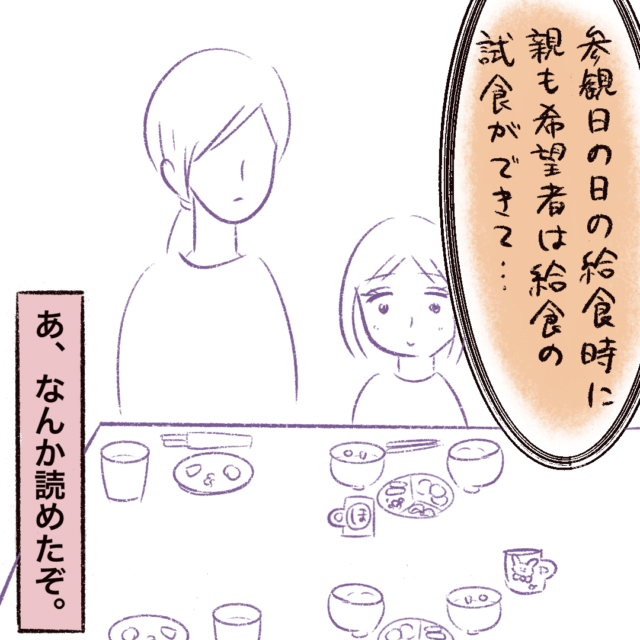 「参観日の日の給食時に、親も希望者は給食の試食ができて・・・」