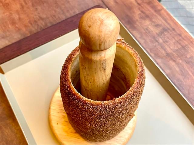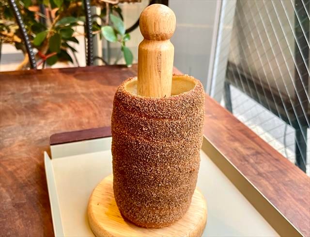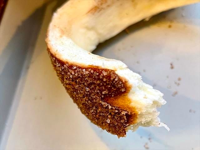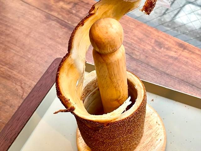 中身は空洞で、高さは15cm程でしょうか。表面にはシナモンがたっぷりとかかり、シナモン好きの筆者としては、甘い香りがたまりません!