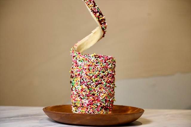真ん中が空洞の円筒形が煙突のよう、ということで「チムニー(煙突)パン」と呼ばれます。トッピングの多彩さや、見た目の可愛さで、近年韓国を中心に新たなスイーツとして注目を集めています。