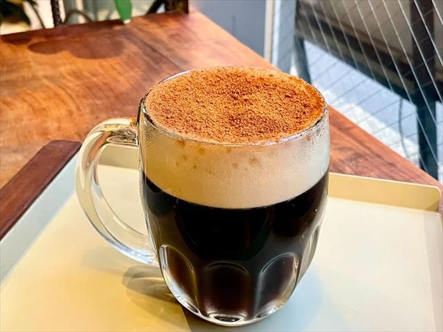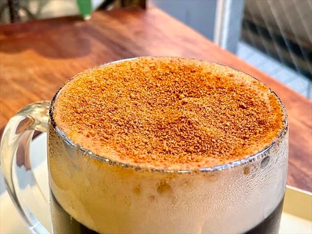 黒ビールと泡の上には、シュガーとシナモンがたっぷり! インパクトのある見た目ですよね。