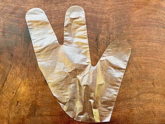 チムニーパンと一緒に、3本指用の手袋もついてきますよ。こうしたフィンガーナップ型の手袋は、韓国系のチキンを食べるときなどでお馴染みですね。