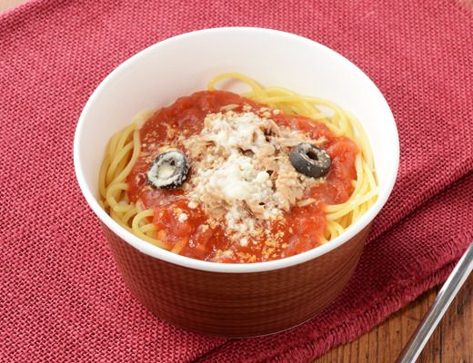 クセになるピリ辛トマトソースにツナと粉チーズを合わせたパスタ。定番のおいしさ!