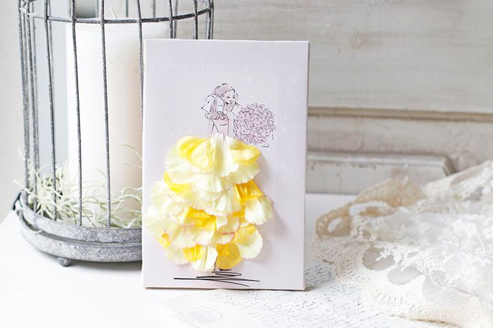 グルーを花びらの一部分にだけつけることで、ドレスがふんわりとなりました。