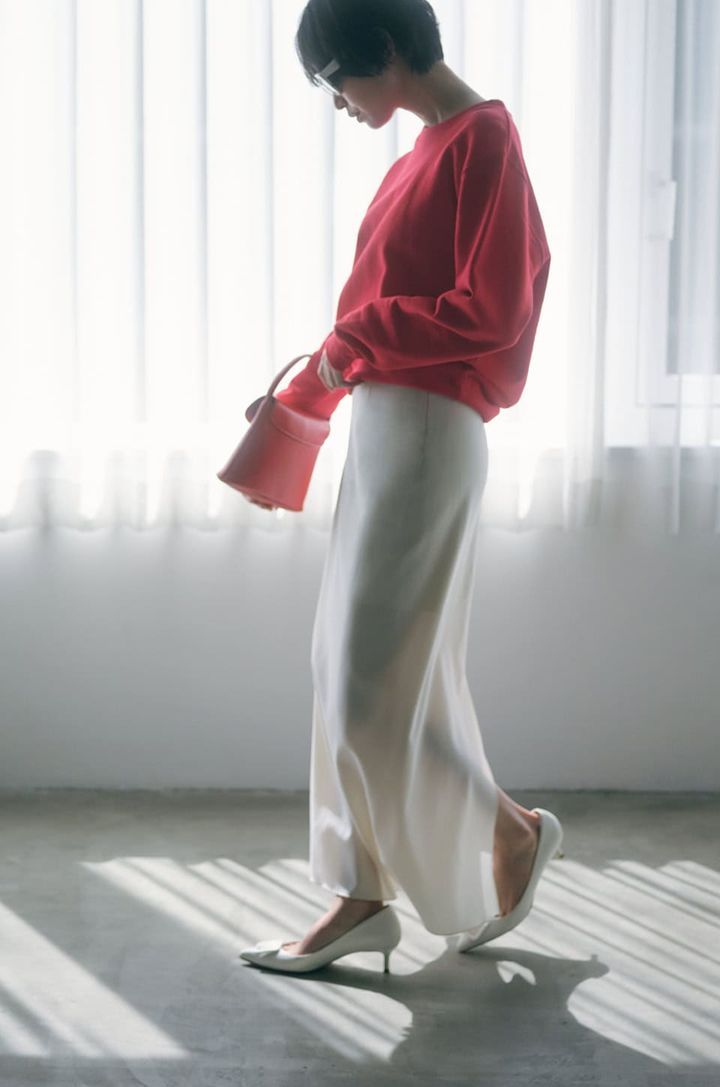 人気のペチコート付きシアースカート。透けるといっても布が1枚あるだけで、ミニスカをはいてるときとくらべ安心感が違う(笑)。タイトスカート¥36,300(ヨー ビオトープ)、スエット¥4,048(ユナイテッドアスレ/キャブ)、サングラス¥59,730(プラダ/ルックスオティカジャパン カスタマーサービス)、バッグ¥14,228(スタンドオイル/ムシンサ グローバル ストア)、パンプス¥34,100(ツル バイ マリコ オイカワ)