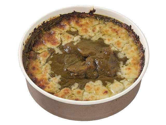 ほうれん草などの野菜をじっくり煮込んだカレーソースに、鶏肉とチーズをのせて焼き上げたドリアです。