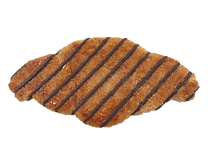 クロワッサン生地に白ザラ糖を付けて、挟み焼きすることで香ばしさが感じられ、さらにチョココーティングでパクパク食べられます。