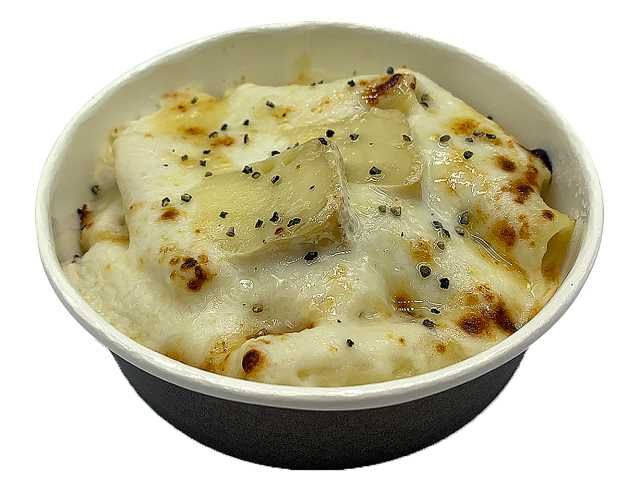 もちもちとした食感のショートパスタ「リガトーニ」を濃厚なチーズクリームソースで味わうグラタンです。