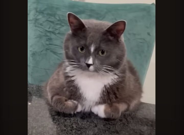 お行儀よく着席! 飼い主の言いつけを守る賢い猫さん。