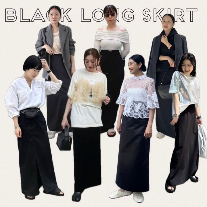いついかなるときも、コーディネートの強い味方になってくれる定番アイテム。今回は、女性らしいスタイルに欠かせない名脇役、黒いロングスカートに注目。黒いロングスカートを使ったおしゃれミューズの春夏の着こなしをたっぷりご紹介します。