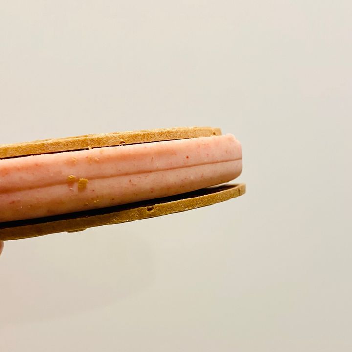 アイスの周りの濃厚なストロベリーコーティングとそれを挟んでいるサクサクのウエハースの相性は言うまでもなく抜群◎