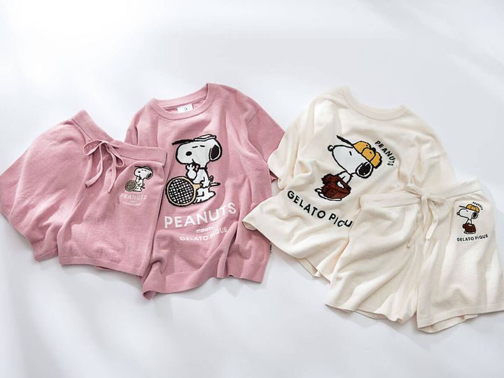 SNOOPY ジャカードプルオーバー 各¥7,480、同ショートパンツ各¥6,930/ともにgelato pique