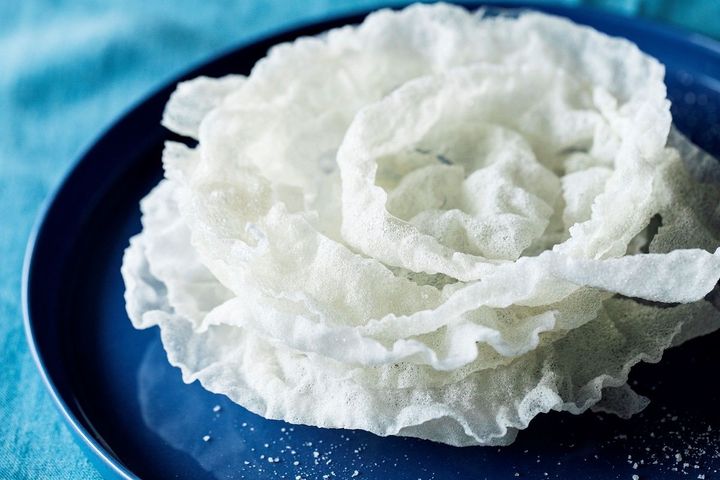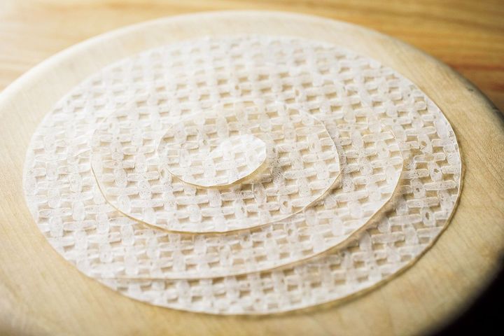 「ライスペーパー」は、お米を原料に作られたシート状の食材。主にベトナム料理の「生春巻き」の皮として使われていますが、これを揚げるだけでなんとおいしいせんべい風になるんです。