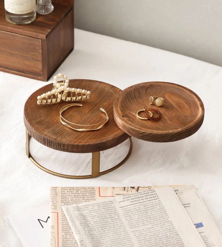 アクセサリーや時計をこのトレーに置くだけでグッとおしゃれな雰囲気になります。脚部分がゴールドなのも高見えポイント◎。スライドしなくてももちろん使えますよ♡