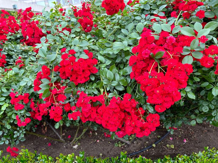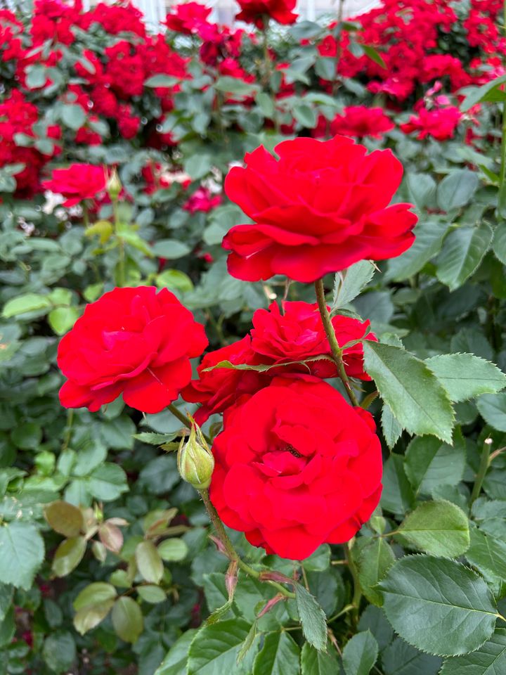 すべて赤いバラですが、近づいて見てみると同じ赤でも様々な種類があることがわかります。
