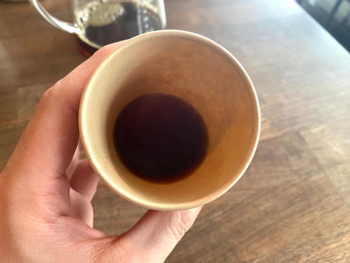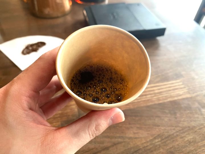 講師の方が作ってくれたコーヒーを試飲。コーヒーの味わいがしっかりと出ながら、すっきりとしていて飲みやすい仕上がりでした。