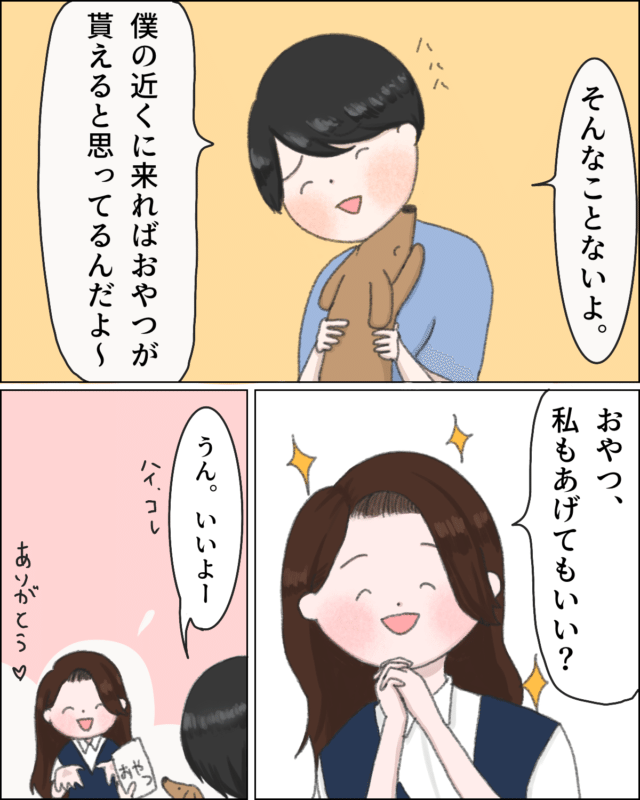 「そんなことないよ。僕の近くにくればおやつが貰えると思ってるんだよ~」