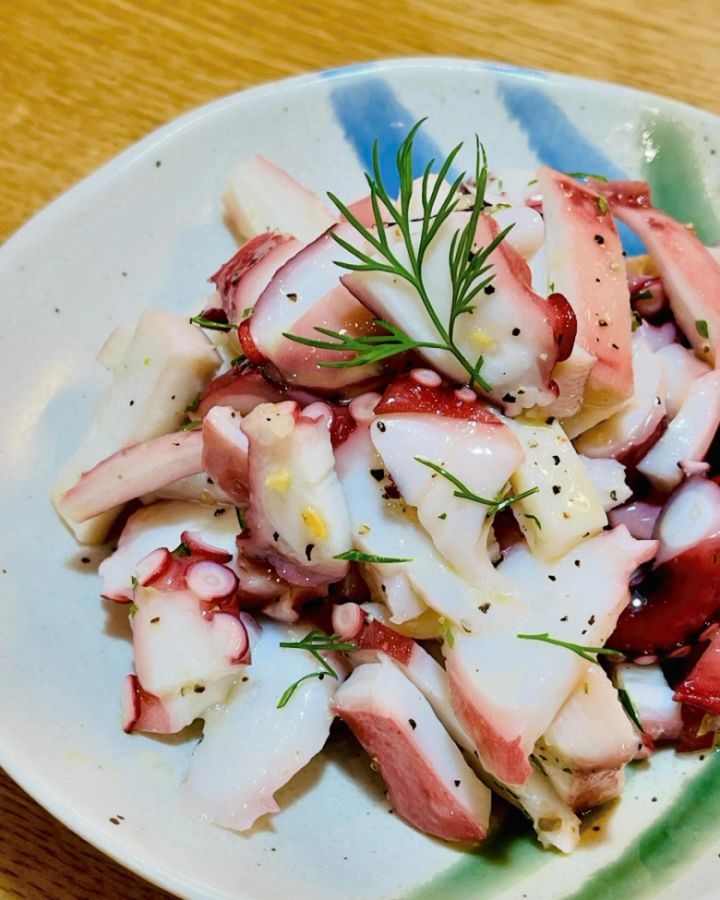 こってりした味わいの鮭のちゃんちゃん焼きには、さっぱりした副菜を合わせるのがおすすめ。シンプルなマリネもハーブをちらせば、見た目も味もさわやかになりますよ。