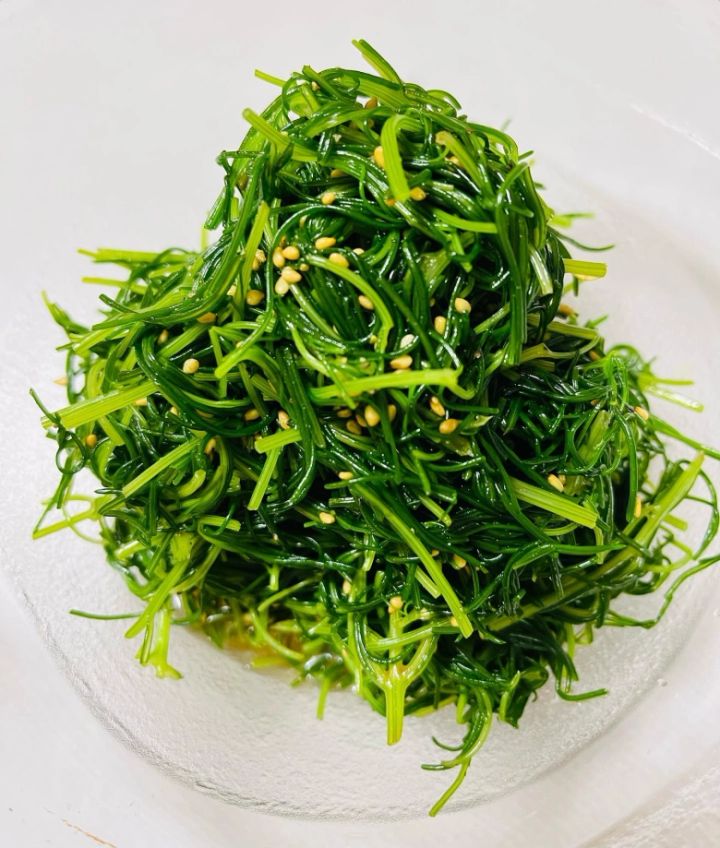 おかひじきは栄養価が高く、シャキシャキとした食感の緑黄色野菜です。鮮やかな緑が鮭のピンク色を引き立たせ、彩り豊かな食卓になりますよ。