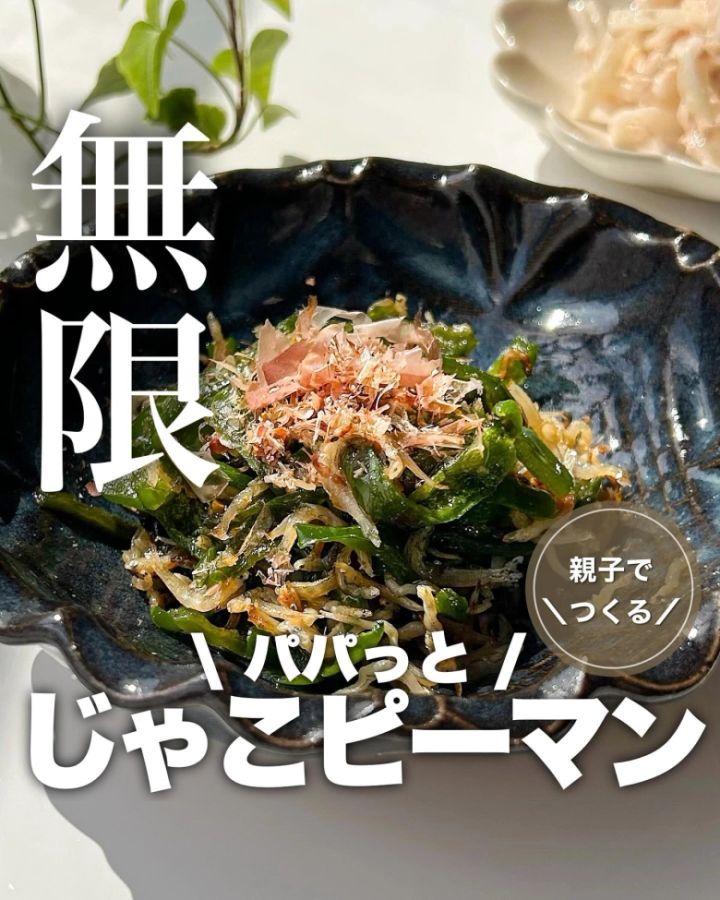 鮭にはビタミンDが多く含まれます。ビタミンDはカルシウムの吸収を促進してくれるので、カルシウムが豊富なちりめんじゃこを副菜に加えてみましょう。ピーマンといっしょに炒めてめんつゆなどで味つけしたら完成です。