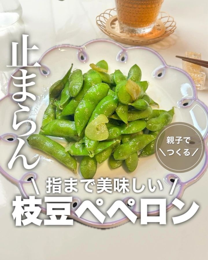 濃いめの味つけの鮭のちゃんちゃん焼きは、ごはんはもちろんお酒との相性もばっちり。同じくお酒に合う枝豆の副菜もおすすめです。冷凍枝豆をごま油とにんにくで炒め、軽く塩で味つけしたら大人も子どもも大好きなメニューの完成です。