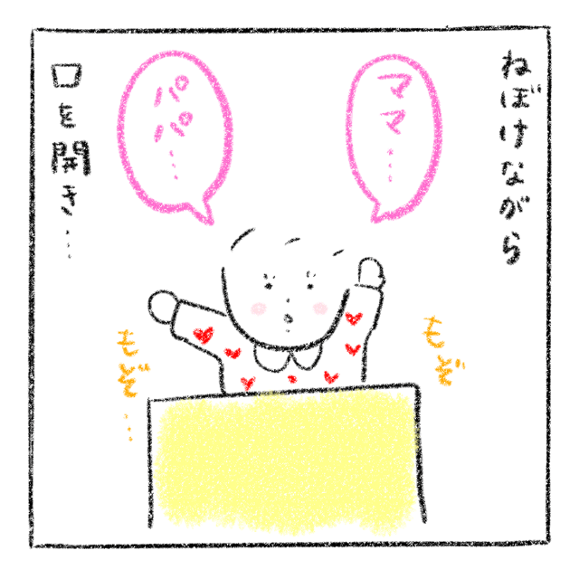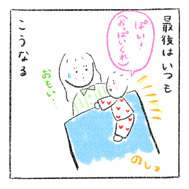3. 「ぱい!」最後はこうなる。お目覚めからゴールまで!1歳娘の朝のお約束|まもぺの育児漫画