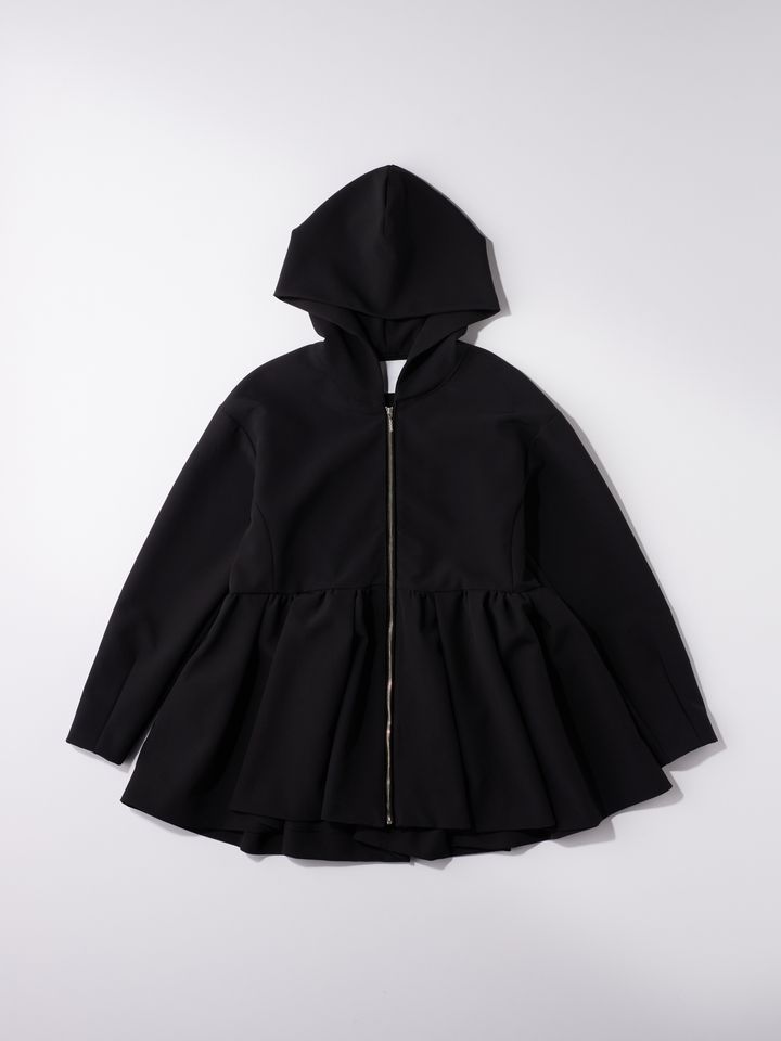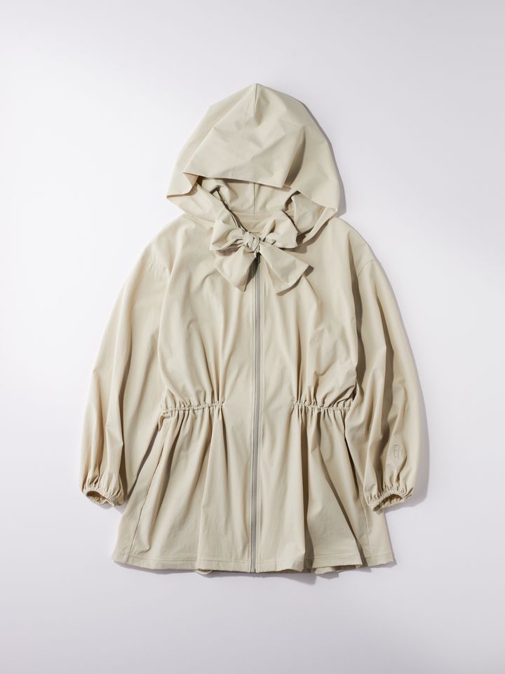 立体的なシルエットで、だらしなく見えない絶妙なサイズ感に仕上げたフーディは、大人もきれいめに着回せるデザイン。ウォッシャブルでUVカット、防シワ加工と機能性抜群。ヒップまでを自然にカバーできるペプラムデザインと裾丈もうれしいポイントです。フーディ¥24,200(SONO/ミラク)