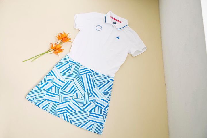 ルコックスポルティフ ゴルフの今シーズンのテーマは「フランス」。涼しげなブルーを基調としたコレクションはどれも夏らしさ満点。ブルー&ストライプでリンクさせたトートバッグで、ワンピの洒落っ気に拍車をかけて。