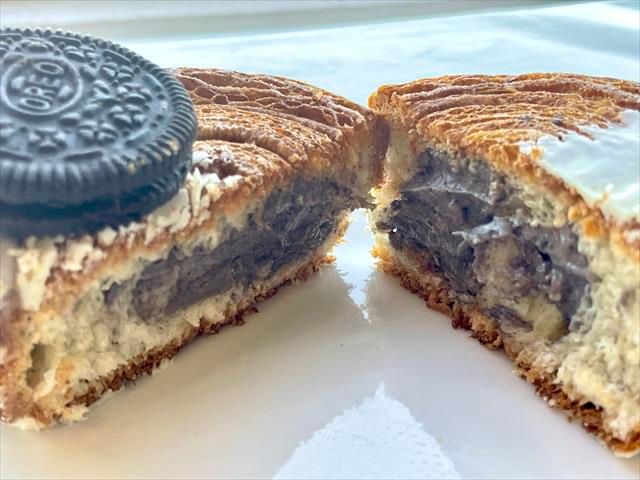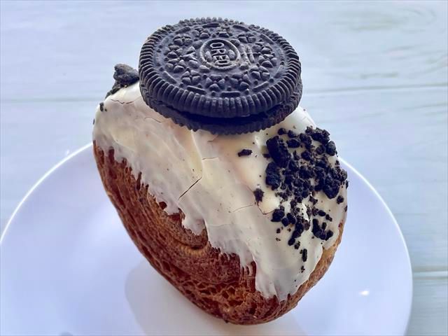 また、オレオ・ピスタチオ味とは、ロール部分の生地も異なるように思います。クロワッサンのサクサク感よりも、デニッシュのふわふわ感が強い仕上がりになっていました!