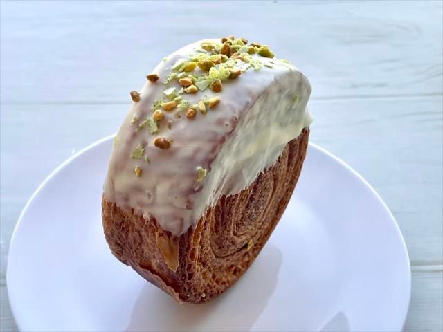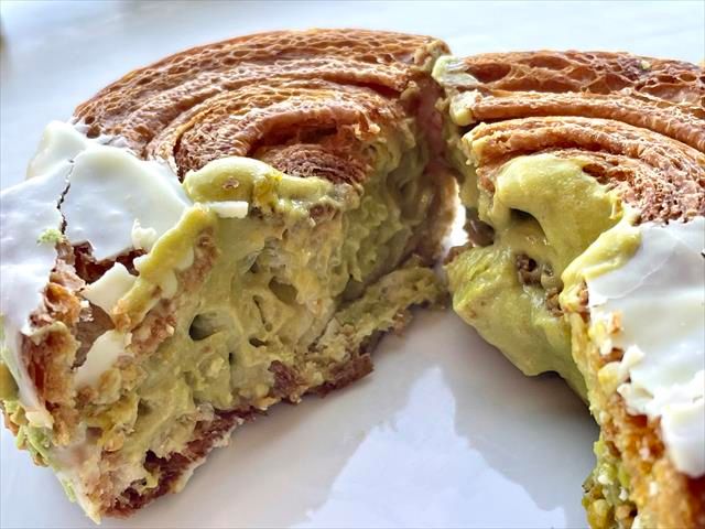 続いて「ピスタチオ」。ロール部分の生地感は、さきほどのオレオと同じ。バターとピスタチオがあわさり、おいしそうな香りです。