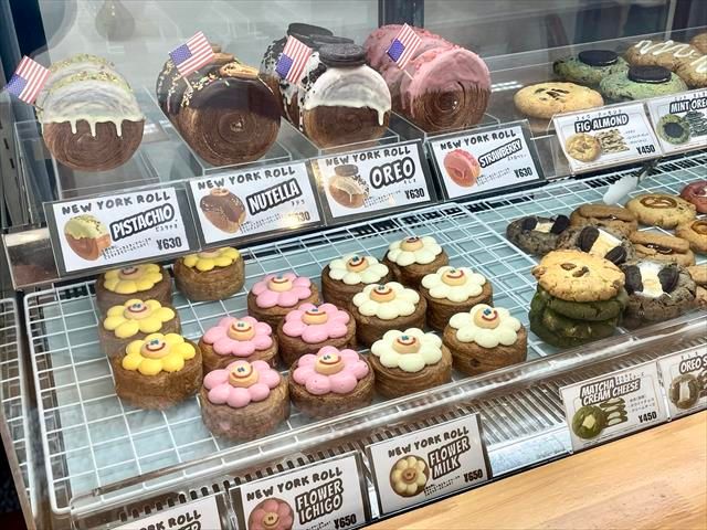 ショーケースには色とりどりのクッキーと、今回のお目当てのニューヨークロールが並びます。確かにこの可愛さ、写真映え抜群ですね。