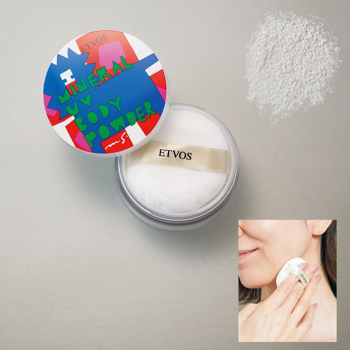 ミネラルを主成分に、皮脂を吸着してさら肌にしつつ、しっとりとした微細粒子は塗り心地抜群。粉感なく敏感肌にも優しくフィット。紫外線や近赤外線などだけでなくニオイもカット。SPF40・PA+++ 8g ¥3,520 限定(エトヴォス)