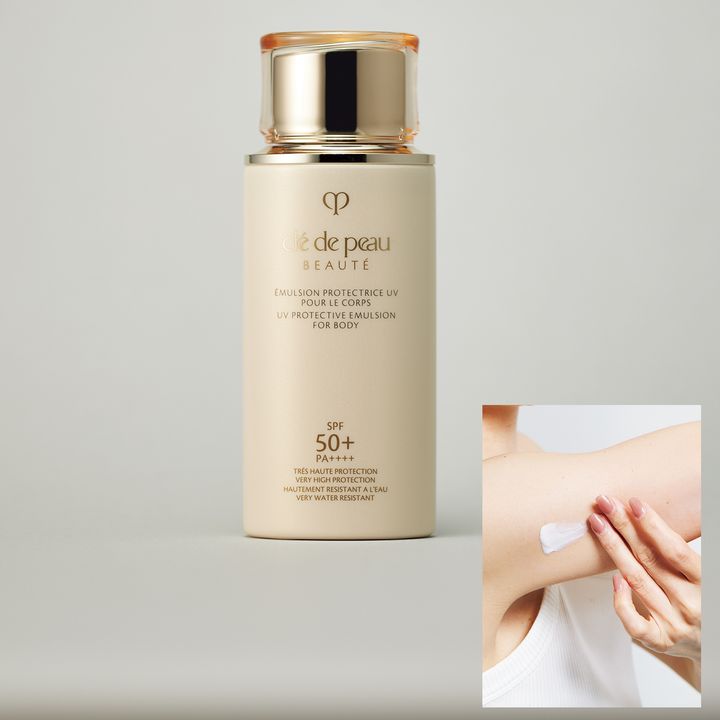 乳液のようなテクスチャー。スキンケア成分高配合で、肌への密着度も高く、摩擦にも強い。肌に必要な光は取り込み、ブルーライトなど有害なものからは防御。SPF50+・PA++++UV耐水性★★ 100ml ¥11,000(クレ・ド・ポーボーテ)