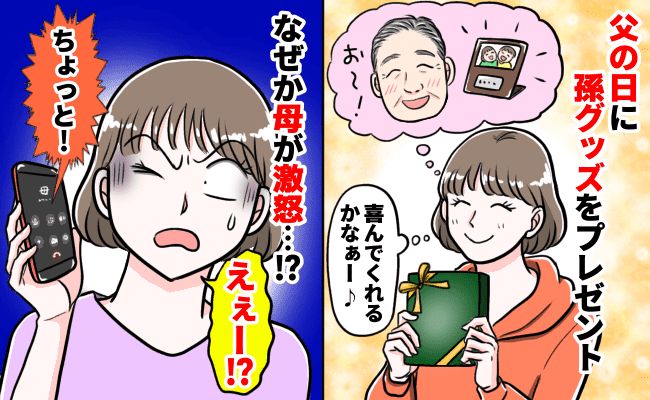 遠方に住んでいるのにそんなことある!?と孫ラブな母の発言に衝撃を受けました。続けて、「かわいいからお母さんが家に飾るわ」と横取りしたのです。そうして、父の日のプレゼントは消えてしまったのでした。