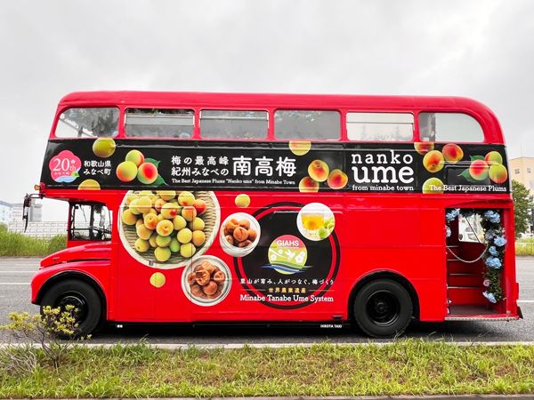 2階建てロンドンバスでアフタヌーンティーを楽しみながら都内を周遊できるスペシャルなバスツアー「アフタヌーンティーバスツアー」。6月は、和歌山県みなべ町と、和歌山県の果樹園・観音山フルーツガーデンが展開する「観音山フルーツパーラー」とのコラボで開催されます。