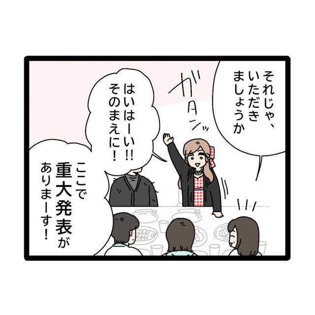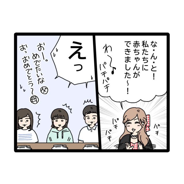 「な・ん・と!私たちに赤ちゃんができました~!わ~!パチパチ~」