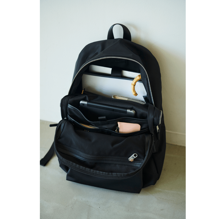 リュックにはなかなかない、軽量 でコンパクトに折り畳めるパッカブル仕様。バッグに忍ばせておけば、出先で荷物が多くなった時にも活躍。ミニマルながら、どこかきれいめなルックスだからカジュアルが苦手な人も使いやすい!