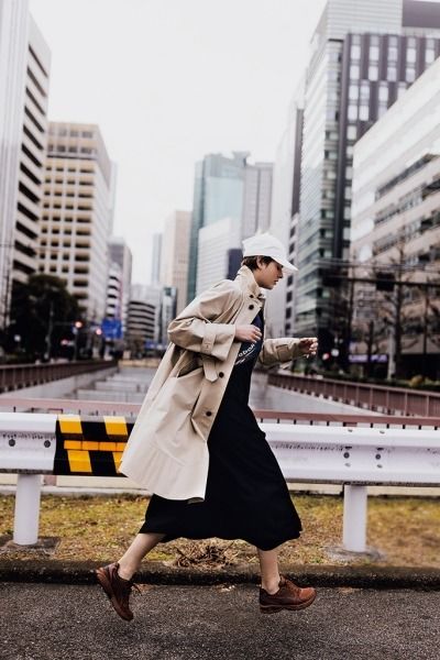 黒ワンピース /takes.(Shinzone ルミネ新宿店) キャップ /CA4LA(CA4LA プレスルーム) スニーカー 22,000円/アシックス(アシックス ジャパン カスタマーサポート部) キャップ+ボディバッグ+スニーカーの体とフィットする3点づかいなら、クラシカルな服にも調和しやすい。