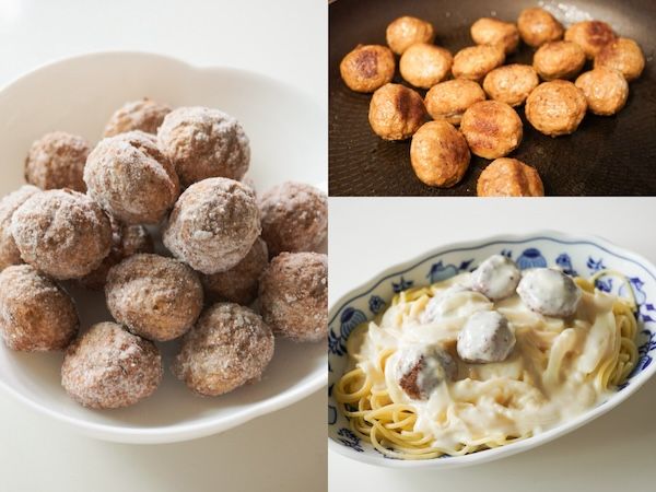 今回は焼き上がったミートボールを自家製のクリームソースであえて、パスタにON。ぎっしりつまった肉感とジューシーさで、食べ応えも抜群です。自家製ミートボールに匹敵するおいしさを味わいたい方はぜひ試してみてくださいね。
