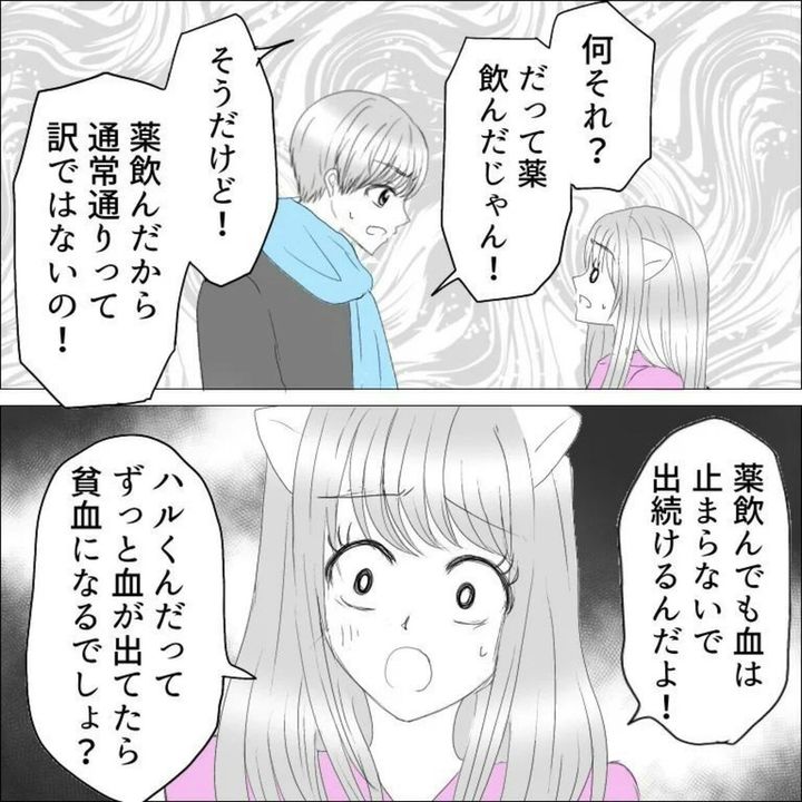 作者・みわ柴ちゃん(@miwashibachan)さんは、当時付き合っていた彼と同棲することになりますが、PMSに対して全く理解がなかったことがきっかけで別れを経験しました。PMSに対するお互いの理解と思いやりの大切さについて教えてくれる作品です。せっかく長時間並んで人気店に入れたのに、あまり食欲もなく口数も少ないみわ柴ちゃんさんにがっかりしていたハルくん。帰宅途中「生理で貧血気味になって気分が悪かった」と自分のことを話したみわ柴ちゃんさんでしたが、ハルくんは納得がいかないようで…。『生理で別れた話』第8話をごらんください。