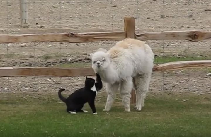 あなたもなかなかですニャ!モフモフを堪能する猫。