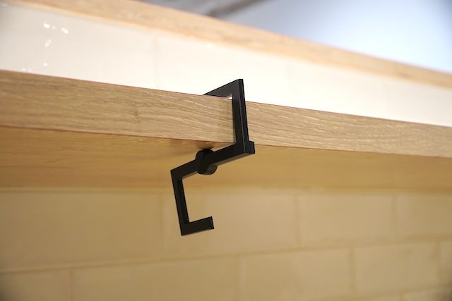 フックを開いて上の部分をカウンターに引っ掛けます。フックの内側は約4cmなので、厚みが4cm以下の場所にかけて利用しましょう。