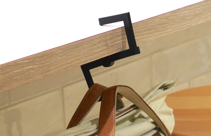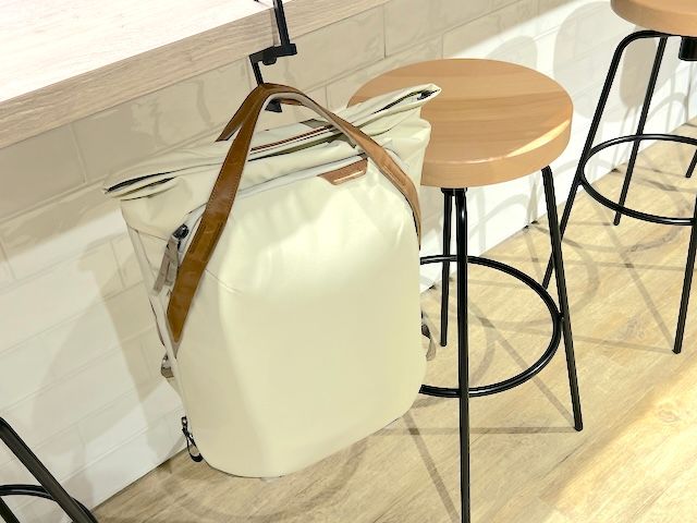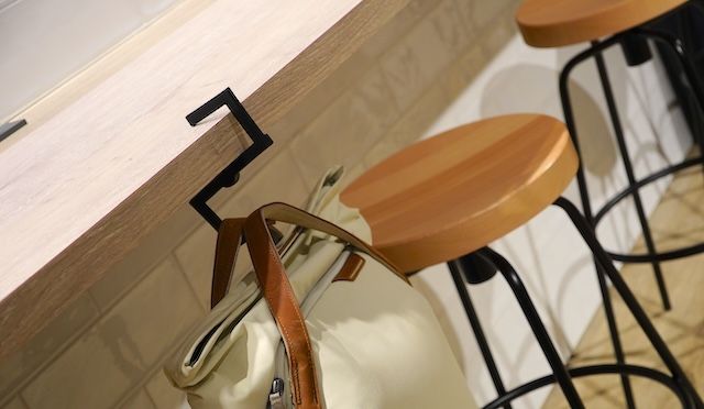 背の高いスツールがあるカウンター席で荷物を床に置いてしまうとスツールから降りてバッグの中のものを取り出さなくてはならず大変ですが、コンパクトフックにかけておけば、バッグが手元の届く場所にあるので荷物の出し入れもしやすくなります。