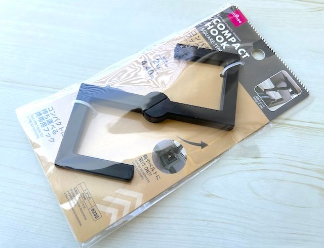 今回試したのはダイソーの「コンパクトフック(スクエアタイプ)」。